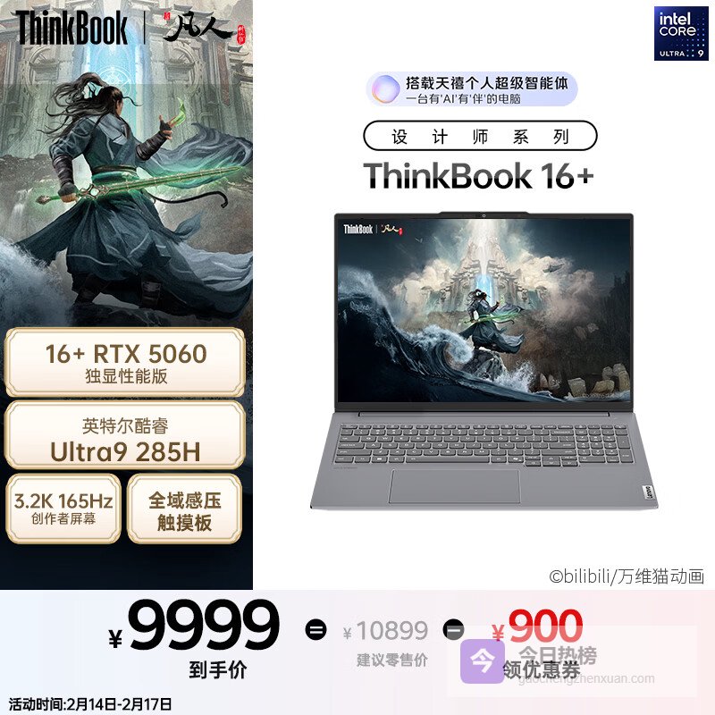 【京东自营】ThinkPad联想笔记本电脑ThinkBook16+AI轻薄独显性能版英特尔酷睿Ult¥