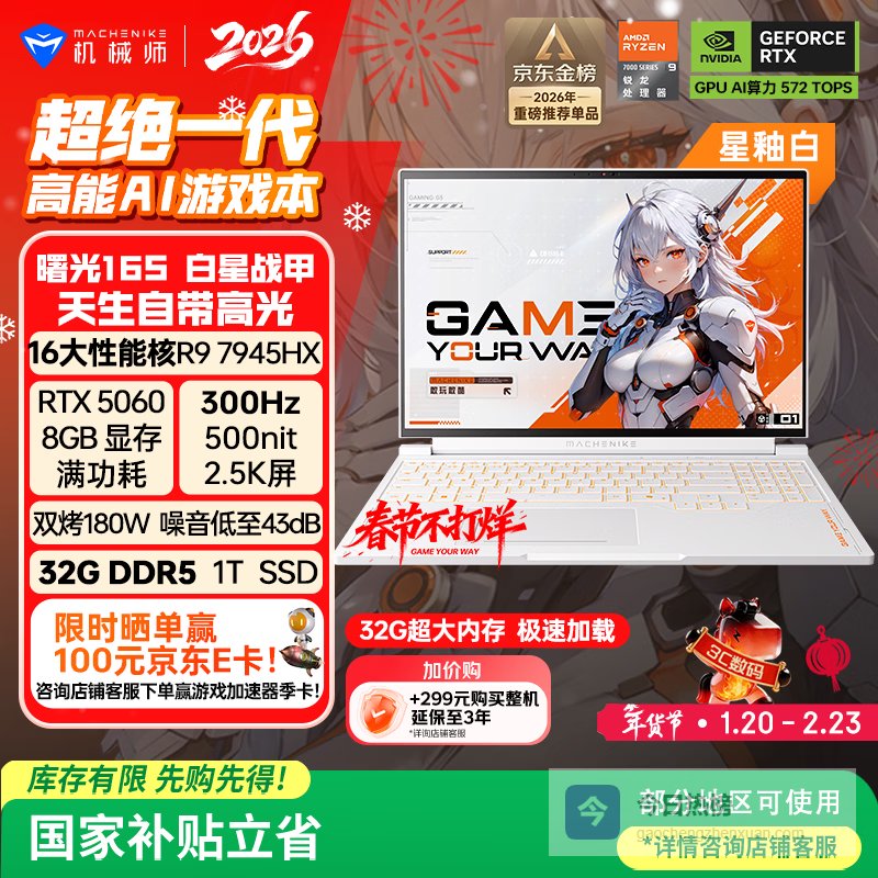 【京东自营】机械师曙光16S星釉白【300Hz屏】16英寸AI办公游戏笔记本电脑国家补贴¥
