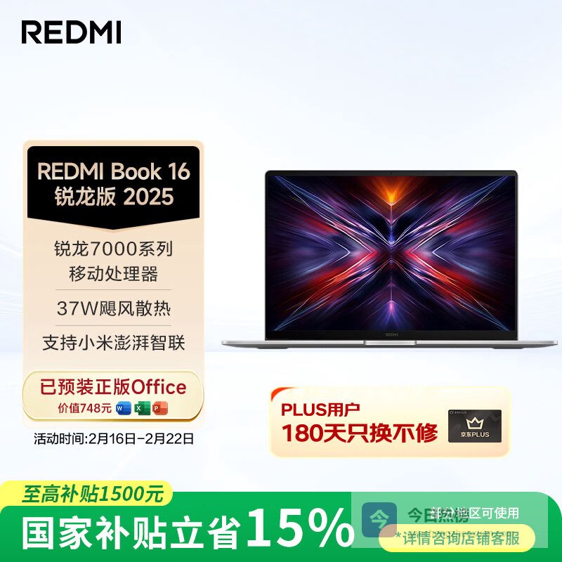 推荐入手:小米红米Book 16 锐龙高性能轻薄本 2025 R7-7735H