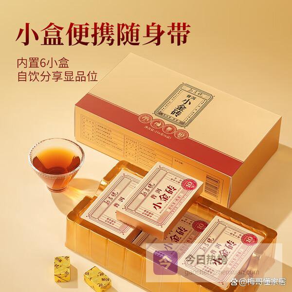 小金砖紧压包装设计,便于携带和冲泡,适合快节奏的生活节奏。每一粒都用独立的小方包装,干净卫生,避免受潮或变质。耐泡程度较高,能够连续冲泡七八次,依然有丰富的茶味,性价比还行。叶底肥厚富弹,柔软完整,经久耐泡,充分展现茶叶的品质。