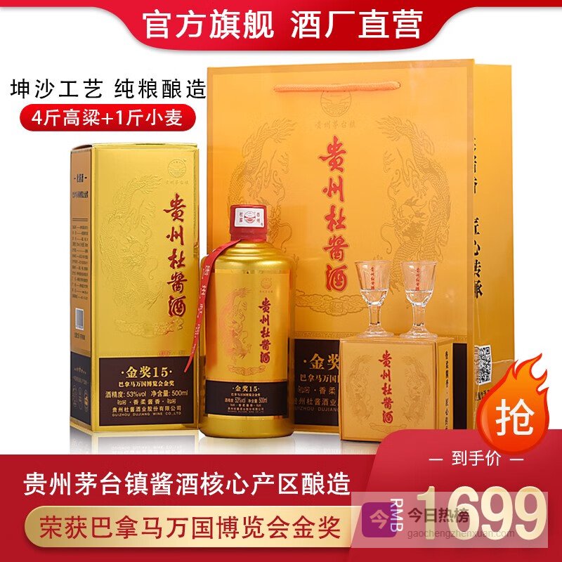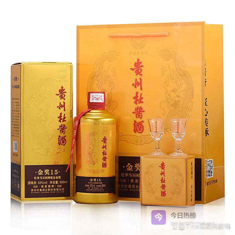 杜酱酒(金奖15)茅台镇53度酱香型白酒 纯粮食坤沙酒 年份窖藏老酒 53度 500mL 6瓶 整箱装+礼袋+带酒杯¥