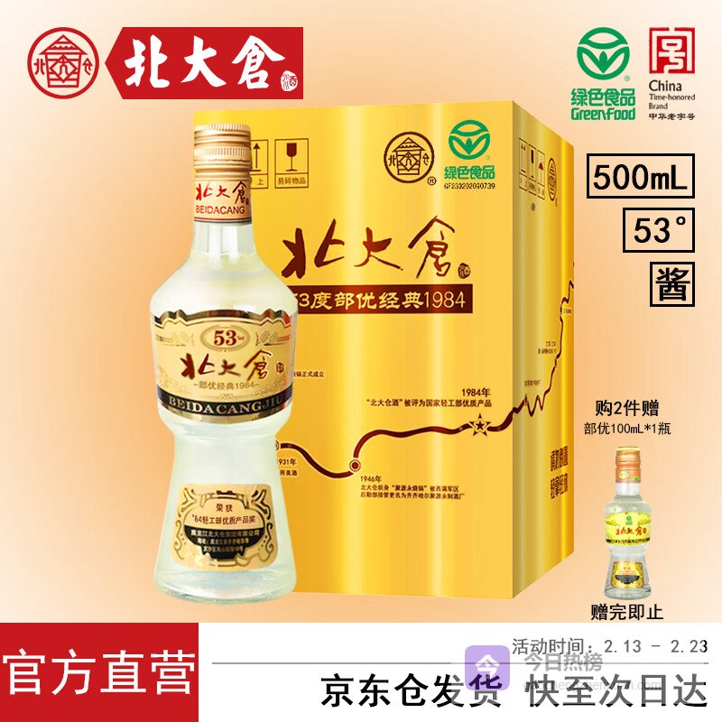 北大仓 部优经典1984 酱香型白酒 整箱装 口粮酒 礼物 酱酒 纯粮 年货 53度 500mL 4瓶¥