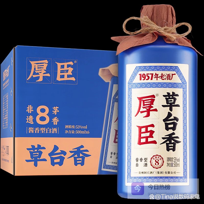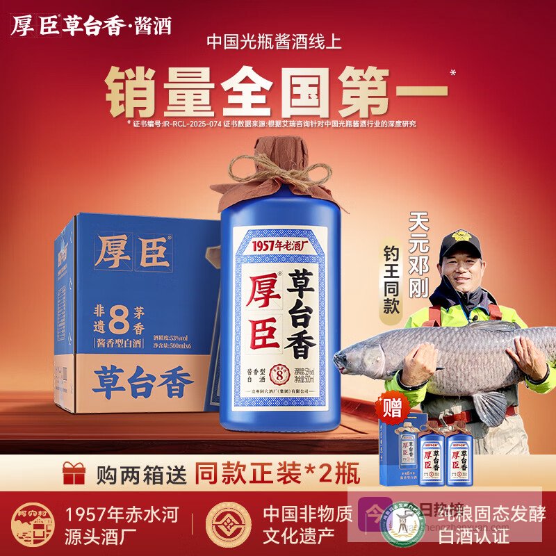 厚臣草台香非遗茅香8酱香型白酒53度500ml纯粮酱酒整箱送礼老丈人酒水 53%vol 500mL 12瓶 【赠同款正装*2瓶】¥