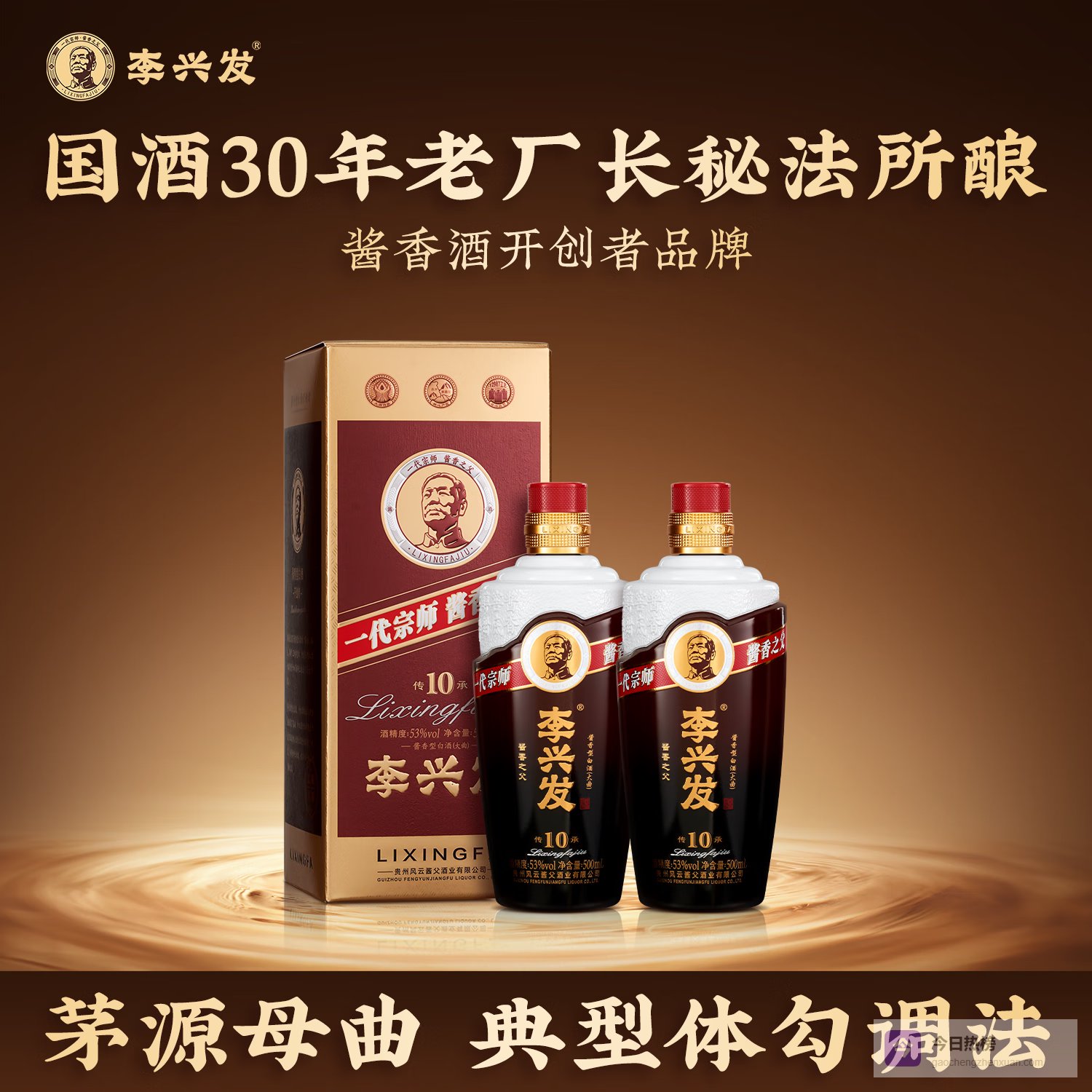 李兴发传承10 酱香型53度白酒 酱父传统工艺 贵州大曲酱酒 老酒送礼宴请 53度 500mL 2瓶¥