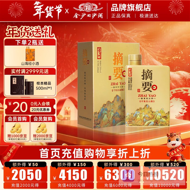 摘要 千里江山图 53度酱香型白酒 贵州金沙回沙 高端酱酒 宴请送礼 53%vol 500mL 1瓶¥