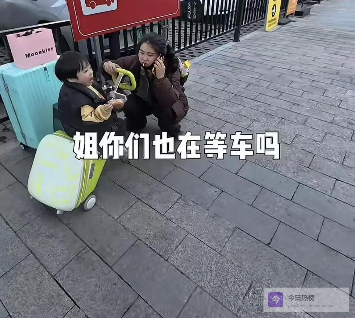 娘俩站在出站口,风一吹,孩子冻得直哆嗦。
