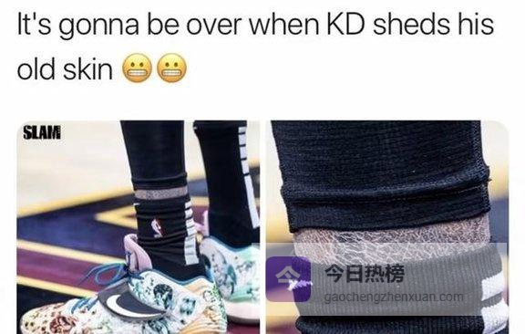 最早那会儿,还是2021年,有场比赛杜兰特膝盖和袜子之间露出一截小腿,皮肤干到像“蛇蜕皮”。一时间被网友玩坏了。