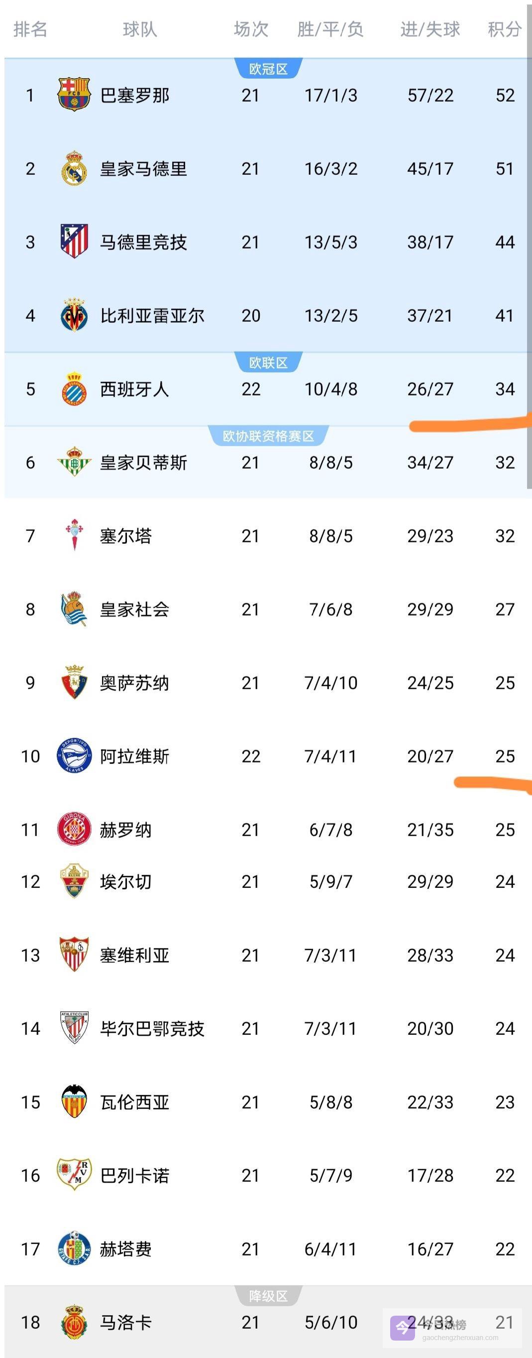 更麻烦的是后头。皇家贝蒂斯就盯着他们呢,32分,只差两分。西班牙人还多赛一场。欧联杯的席位,眼看着就不稳了。阿拉维斯这一下可算是舒坦了,从22分拿到25分,一口气往上蹿了好几位,降级区的压力顿时小了很多。一场球,让一头一尾两支球队的心思全变了。