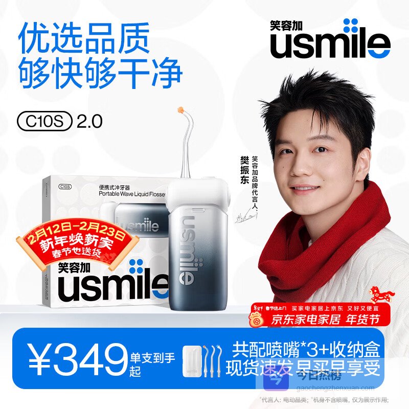 【京东自营】usmile笑容加冲牙器伸缩便携式洗牙器洁牙器C10S松烟墨2.0生日礼物新年礼物¥