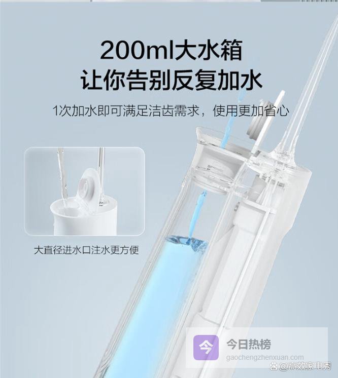 推荐理由:这款电动冲牙器集合多种创新设计,强大的清洁能力,让口腔卫生变得简单高效,是追求健康生活的理想选择。