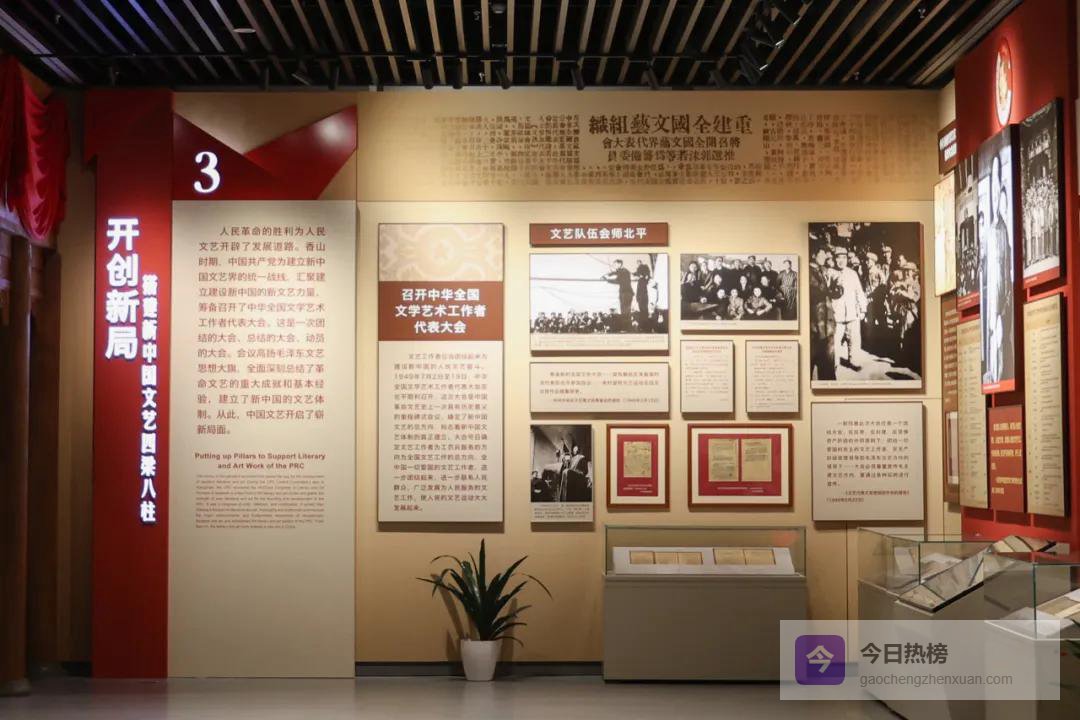 ▲图为展览第三部分 开创新局:搭建新中国文艺四梁八柱。