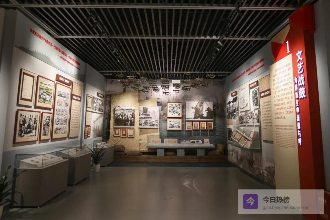 ▲图为展览第一部分 文艺战鼓:为解放全中国鼓与呼。
