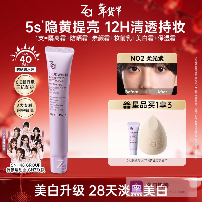 推荐入手:自然堂三合一隔离霜 紫色SPF32++ 30ml