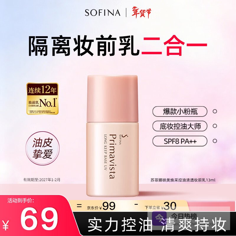 【京东自营】苏菲娜隔离霜遮瑕素颜学生新年情人节礼物防晒SPF8PA++控油妆前乳13ml¥