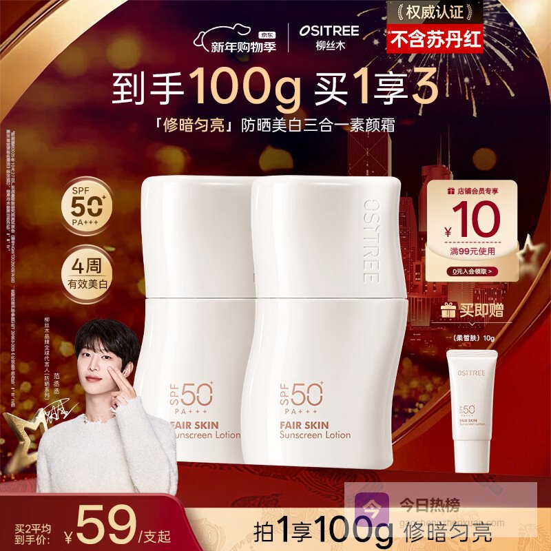 【京东自营】柳丝木【范丞丞同款】美白防晒素颜霜保湿遮瑕妆前乳隔离霜柔皙肤45g*2¥