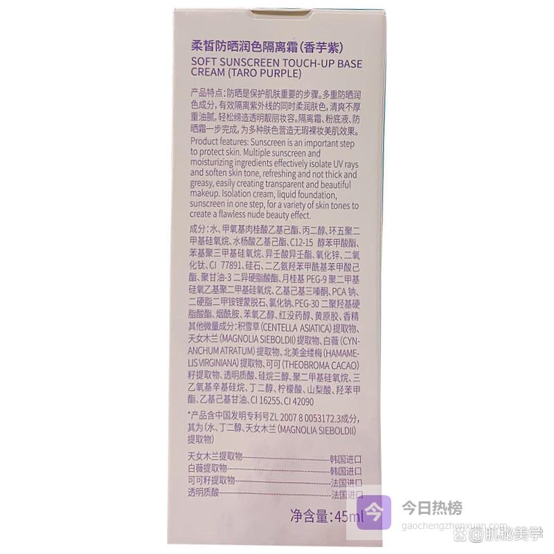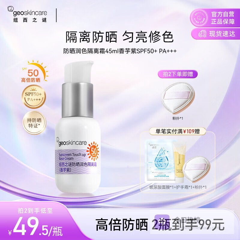 推荐入手:纽西之谜防晒隔离霜45ml香芋紫SPF50+