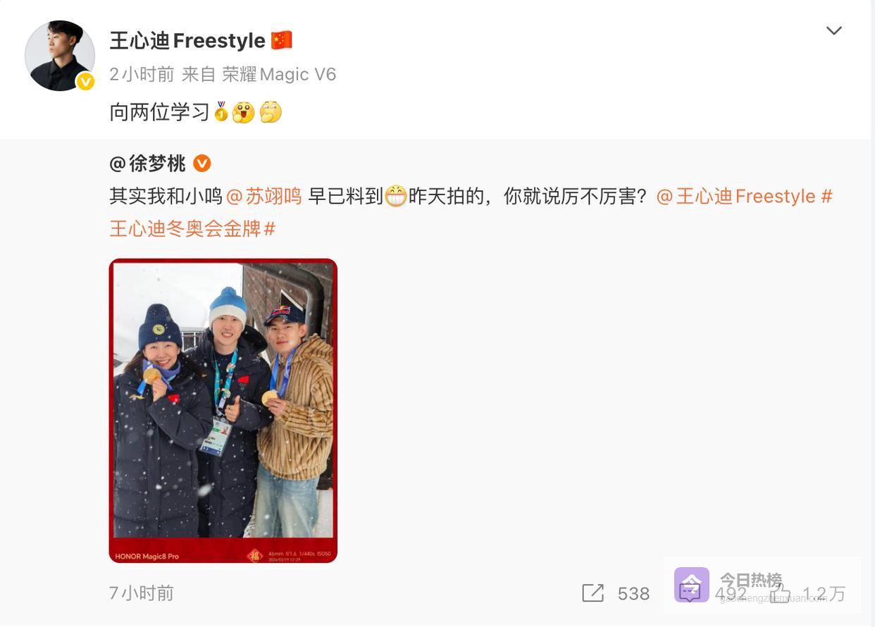 网友们已经开始期待那个画面:回家以后,把金牌挂在同一个橱窗里,并排摆好;王心迪凑过去看了看,然后默默把自己的往后挪了半寸——还是让桃姐的,稍微靠中间一点点。