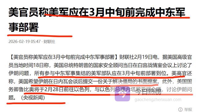 现在各种消息满天飞,比如伊朗和俄罗斯军演,比如特朗普要求所有军队在中东的集结应该在3月中旬前完成,比如攻击行动最早能在本周末发起,比如美国国务卿兼国家安全顾问卢比奥将在2月28日访问以色列······
