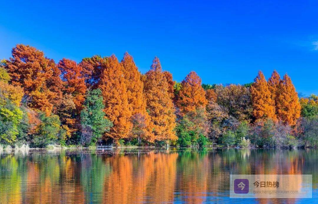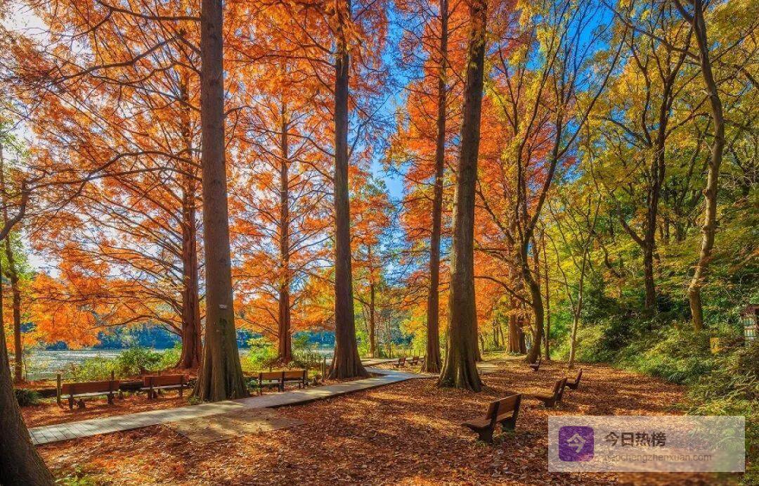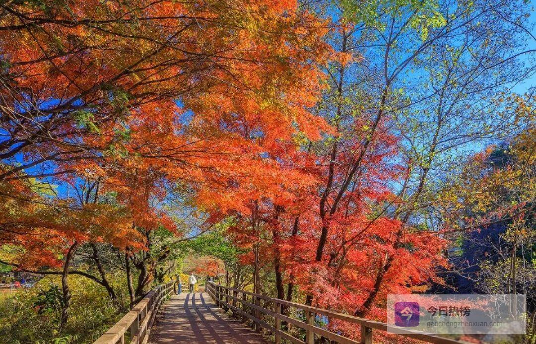 从东京站搭车约30分钟, 狭山湖把红叶倒影在钴蓝湖面上,形成强烈对比。11月下旬到12月上旬是拍照黄金期,湖畔木栈道全程开放,吹着湖风看叶落,治愈感瞬间拉满。