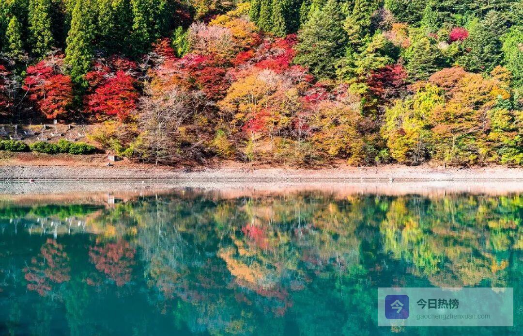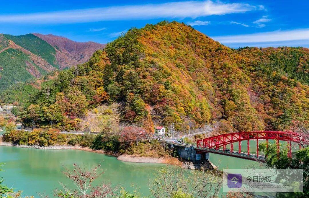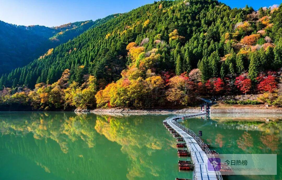 从东京站搭车约50分钟, 奥多摩湖把钴蓝湖水与赤黄红叶形成高反差,是摄影师年度必打卡点。最佳观赏期在10月上旬到11月中旬,环湖木栈道约5公里,可租借自行车环湖一圈约两小时。夕阳下湖面金光闪闪,再配上火红枫叶,画面直接封神。