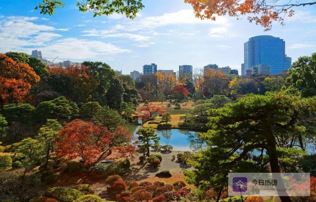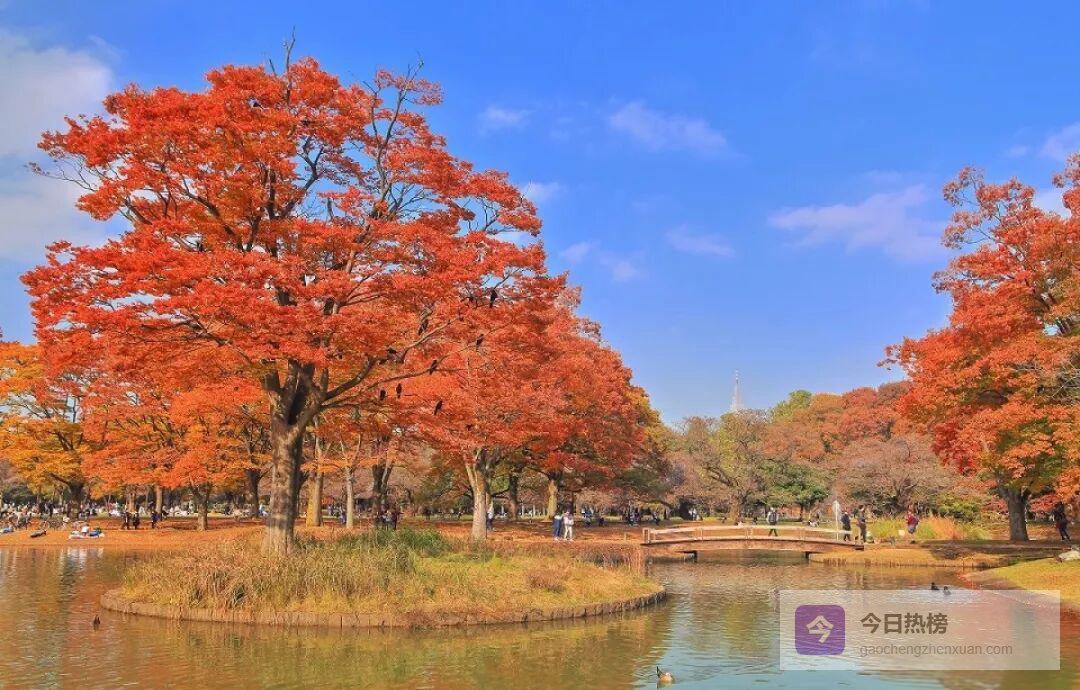 在涩谷的喧嚣中, 代代木公园的枫叶像一块天然地毯把都市温柔包裹。傍晚坐在长椅上,看落樱旋转飘落,整座公园瞬间变成秋日的私享影院。最佳观赏期同样在11月下旬到12月上旬,傍晚灯光亮起后更添几分浪漫。