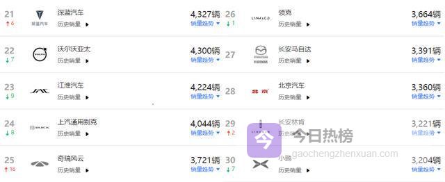 坦克和极氪作为长城和吉利的子品牌,出口量正在稳步爬升。深蓝汽车4327辆、沃尔沃亚太4300辆、江淮汽车4224辆、上汽通用别克4044辆、奇瑞风云3721辆、领克3664辆、长安马自达3391辆、北京汽车3360辆、长安林肯3221辆、小鹏3204辆依次排在第21到30名。新势力中小鹏也开始出现在出口榜单上,虽然量还不大,但趋势向好。整体来看,出口市场的参与主体越来越多元化,自主品牌、合资品牌、新势力都在加速布局海外。