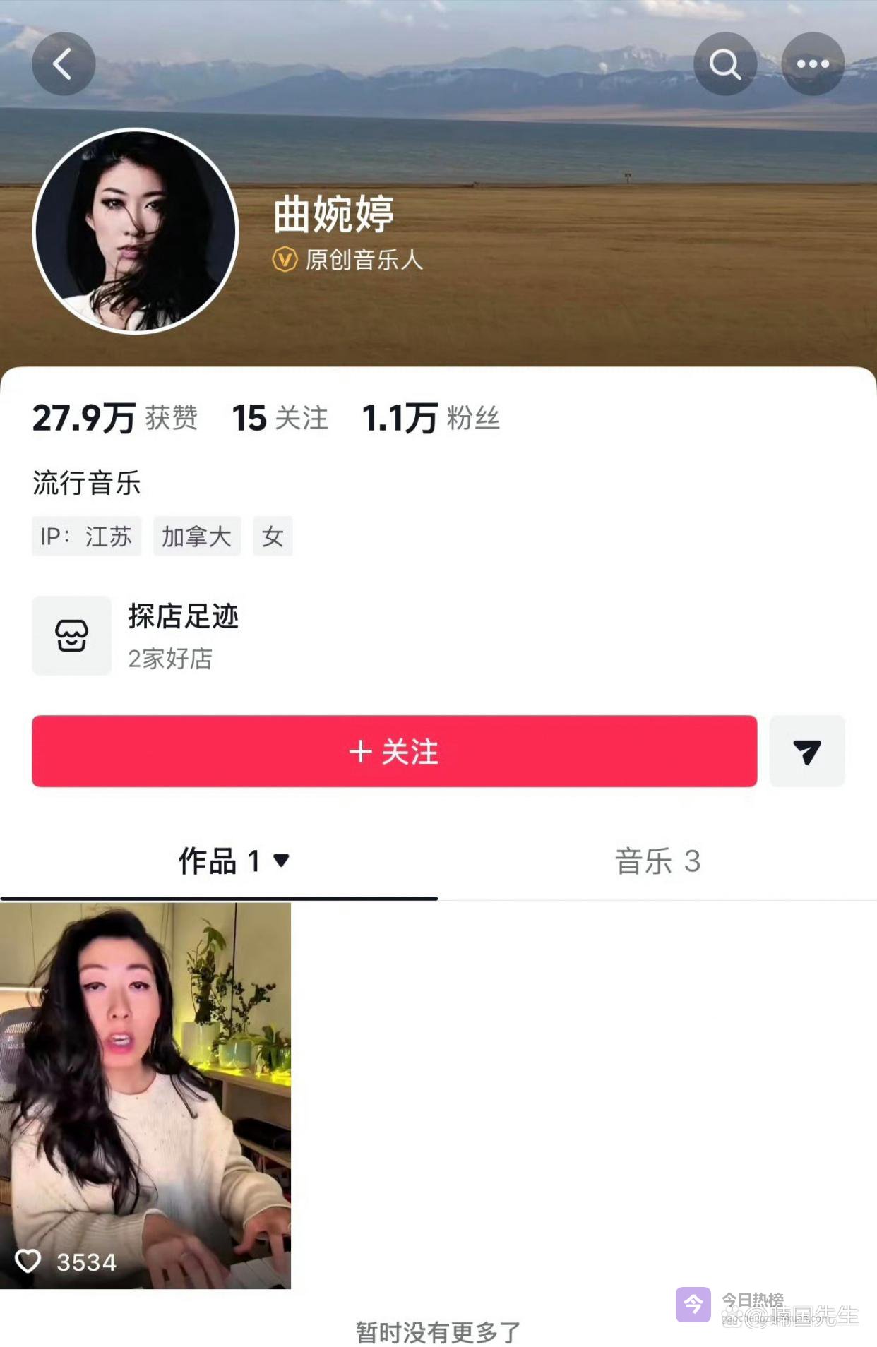 今年春节前夕,曲婉婷穿上一件印着醒目“中国”字样的红色卫衣,发视频拜年,手写告示宣布要发新专辑。短短几天后,抖音账号开通,认证身份是“原创音乐人”。