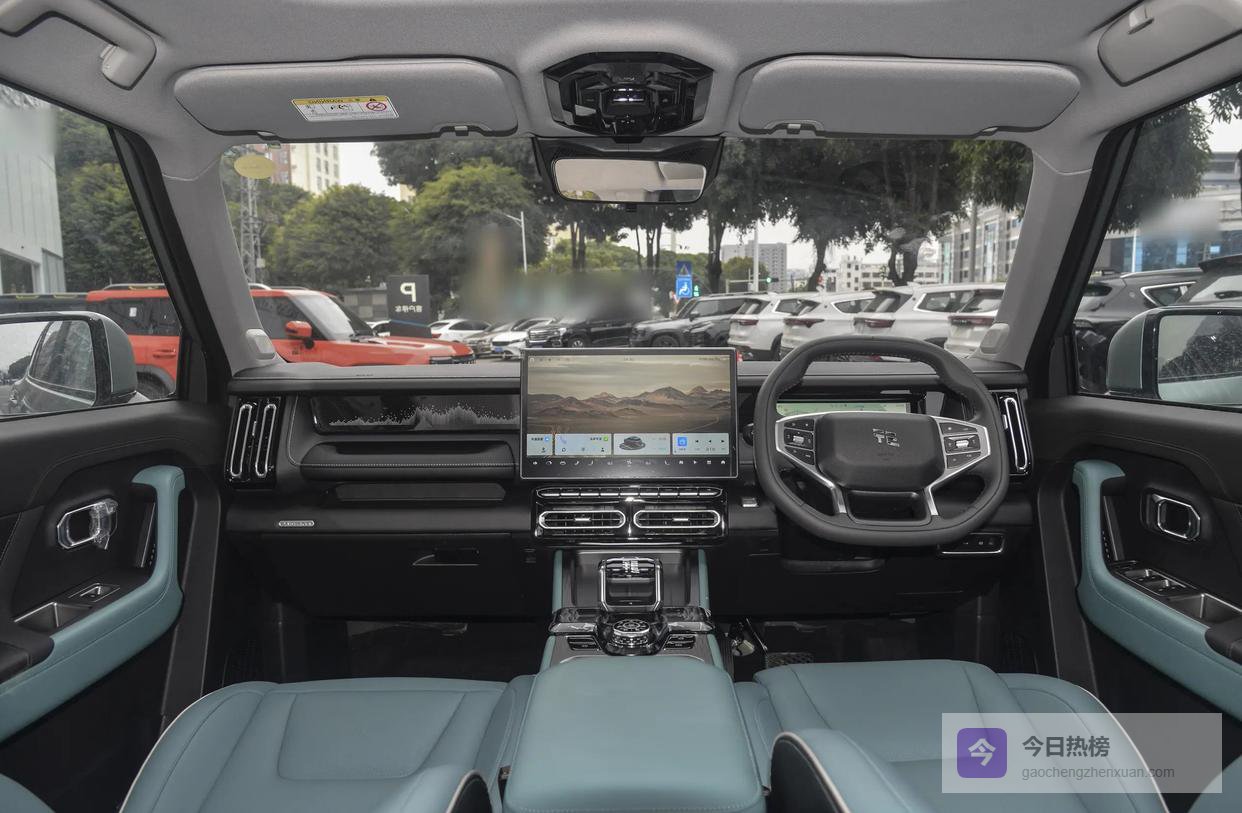 “方盒子”造型自带硬派光环,引擎盖两条隆起的筋线让车头看起来更有力量感;熏黑中网与贯穿式四叶草LED大灯无缝衔接,夜间点亮辨识度极高。全车80%以上采用高强度钢材,户外乱石路、深沟浅坎都能给足安全感。2810 mm轴距越级对标中型SUV,后排坐180 cm乘客仍有一拳半腿部空间,家用不尴尬。