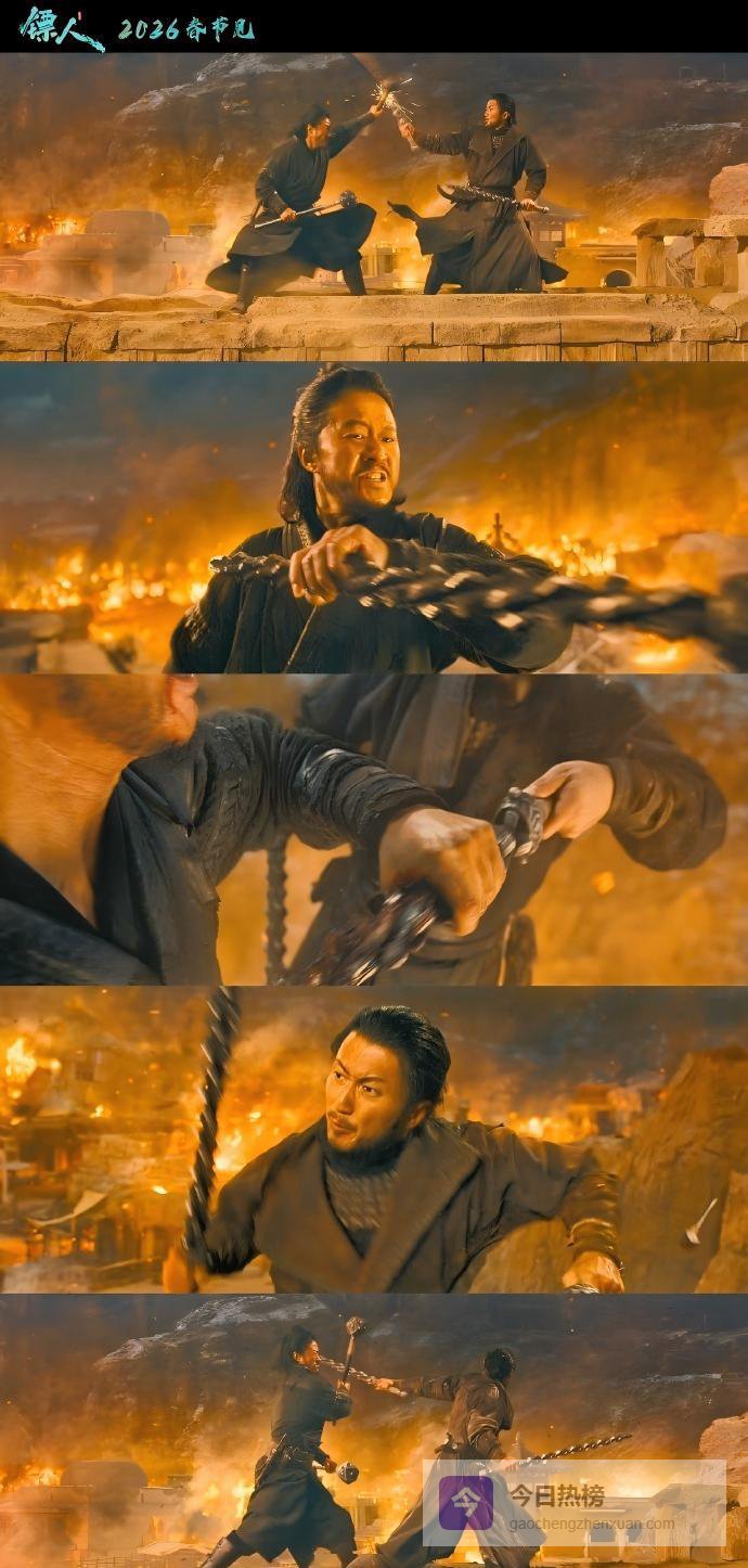 吴京与谢霆锋在沙漠里那场对决,刀出鞘的声音、兵器碰撞的火星、演员摔在沙地里的闷响,全是实拍。没有威亚、没有鼓风机, 拳拳到肉的硬碰硬,既有老武侠的筋骨,又带西部片的野性,看得人血脉偾张。