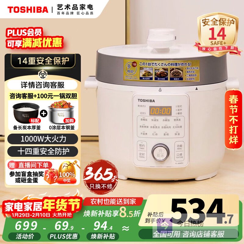 安全,永远是厨房电器,尤其是压力类产品的首要考量。东芝这款电压力锅将“14重安全保护”作为核心卖点,从开合盖安全、压力控制到过热保护,构建了全方位的防护体系,特别适合对家电安全性有极高要求的家庭,或者是有长辈操作的家庭。