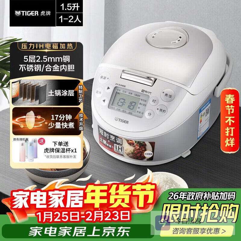 虎牌(TIGER)电饭煲Pro 迷你小型IH土锅涂层 电饭煲 家用1-2人 1.5L 绸缎白 JPF-A55C¥