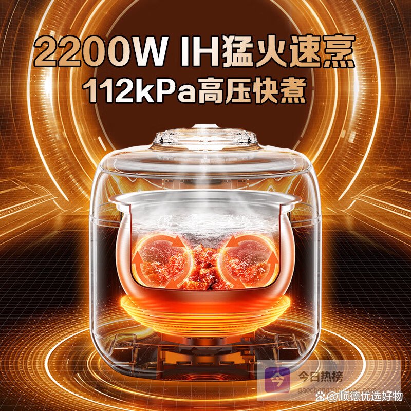这是针对有健康饮食管理,特别是“低糖饭”需求家庭的进阶选择。美的这款产品将“112kPa超高压”与“IH加热”结合,并提出了“低脂浓香”的概念。其原理是通过高压和精准的温度控制,在煮饭时促使米饭中的部分支链淀粉溶出(即米汤),从而实现降低米饭中可吸收糖分(还原糖)含量的效果,同时因为米粒充分吸水膨胀,口感依旧饱满Q弹。