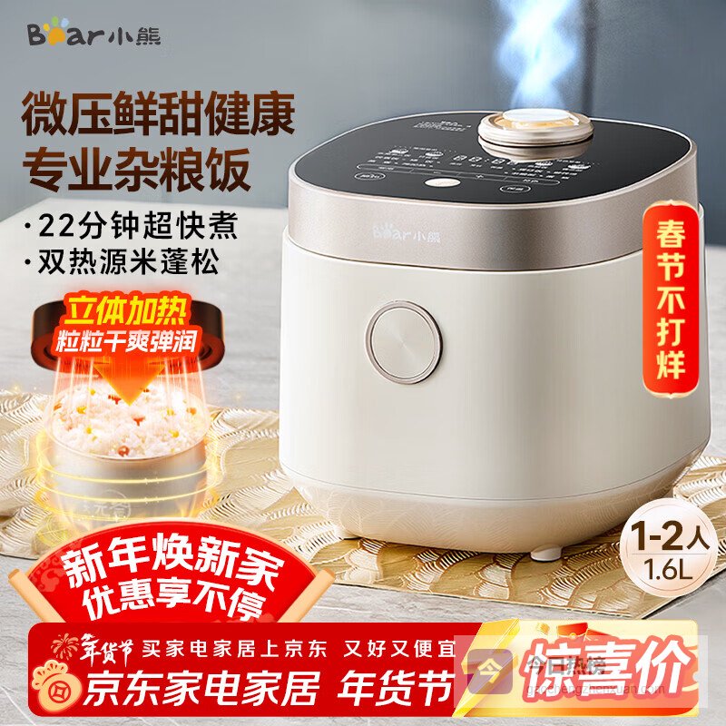 小熊(Bear)电饭煲1-2人 小电饭锅迷你家用一键快煮饭微压多功能预约配蒸笼1.6L蒸饭器DFB-C16Q1¥
