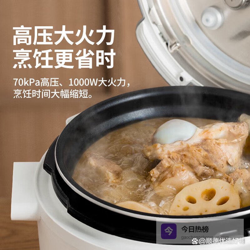 如果你的需求已经超出了“煮饭”,而是想要一个能快速搞定一桌菜的全能厨房助手,那么这款IH电压力锅值得重点关注。它将“IH电磁加热”和“112kPa高压”两大核心技术结合,解决了传统压力锅加热不均和普通电饭煲炖煮乏力的痛点。IH加热让球釜内胆自发热,热效率极高;高压则能大幅缩短炖煮时间,尤其是对付蹄筋、牛腩这类硬质食材,效率惊人。