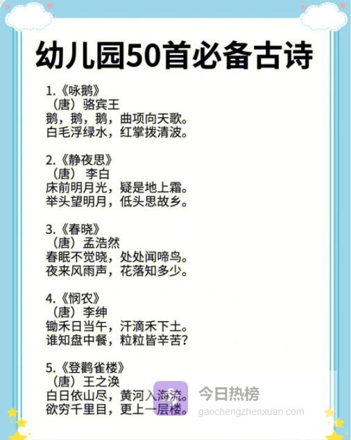 市面上幼儿古诗资料鱼龙混杂,挑来挑去,只留下50首“全家都会背”的经典: