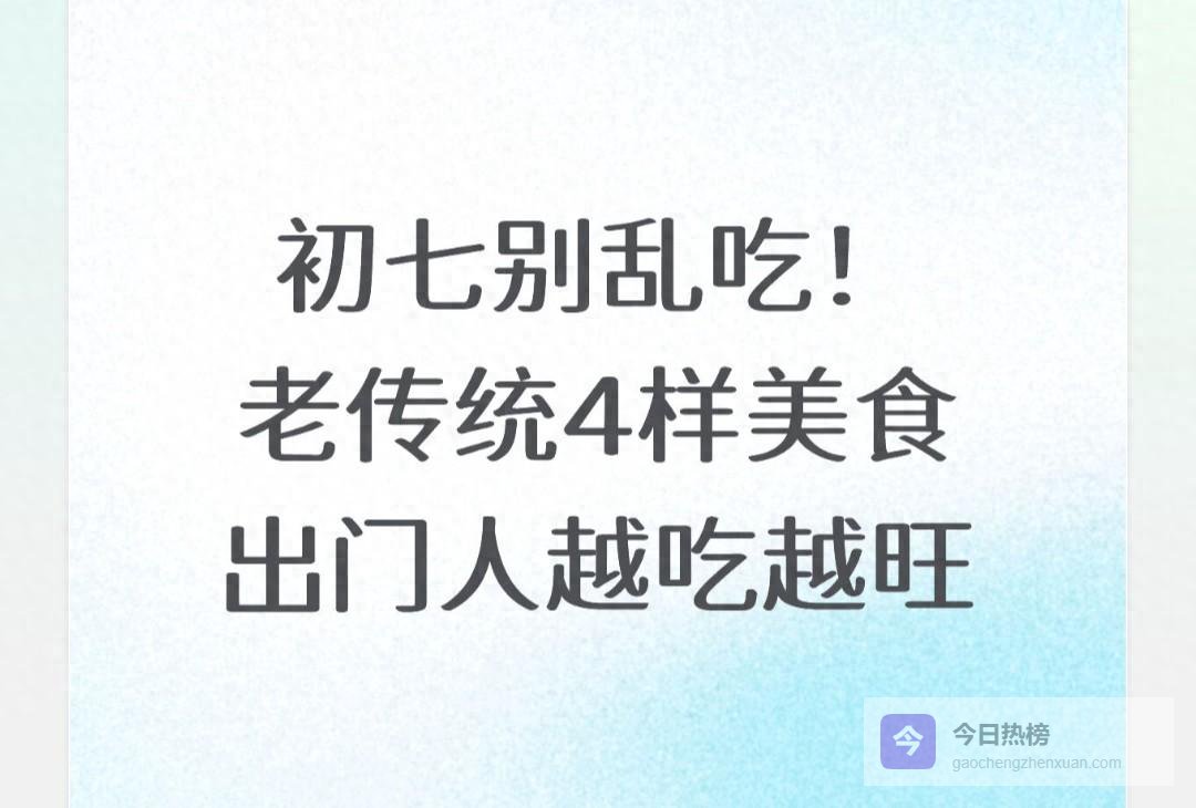 老传统之所以千年不衰,正因为它简单却暖心——一碗面、一碟菜、一张饼、一条鱼,吃得是食物,托起的是家人对孩子、对远方亲人的全部牵挂。2026年的正月初七,无论你身处何方,别忘了把四样吃全:出门遇贵人,办事顺心意;身体健健康康,家庭和和美美;财运滚滚而来,日子越过越旺!