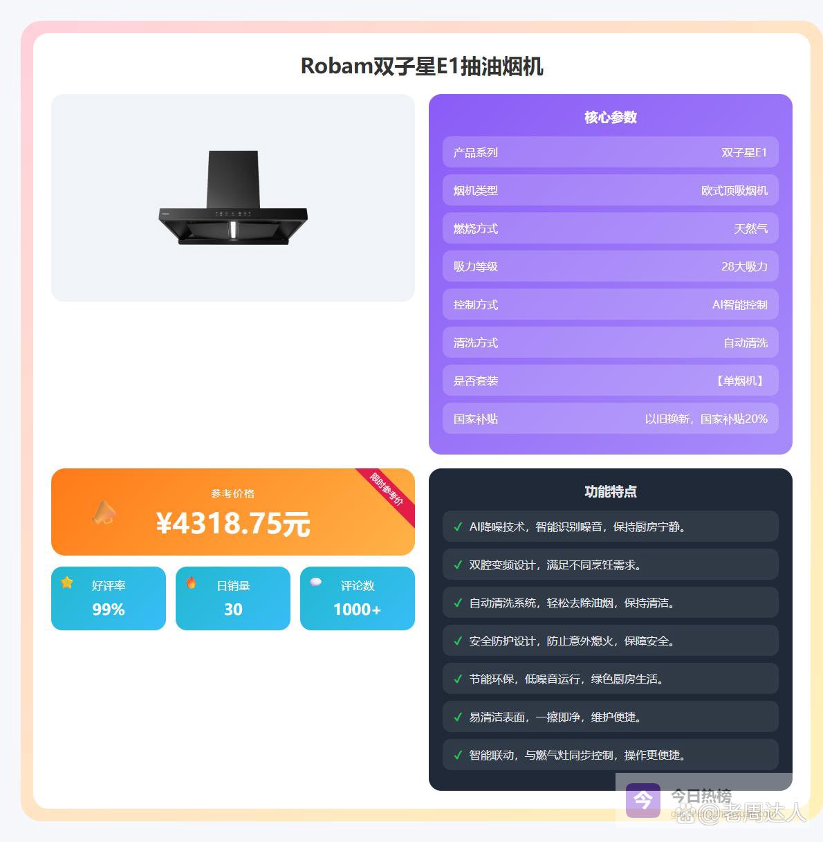 简单说,双子星E1的“好”,是美学和技术的融合。它代表了老板电器对厨房空间美学的探索,适合那些将厨房视为家居艺术一部分、且预算充足的高端用户。