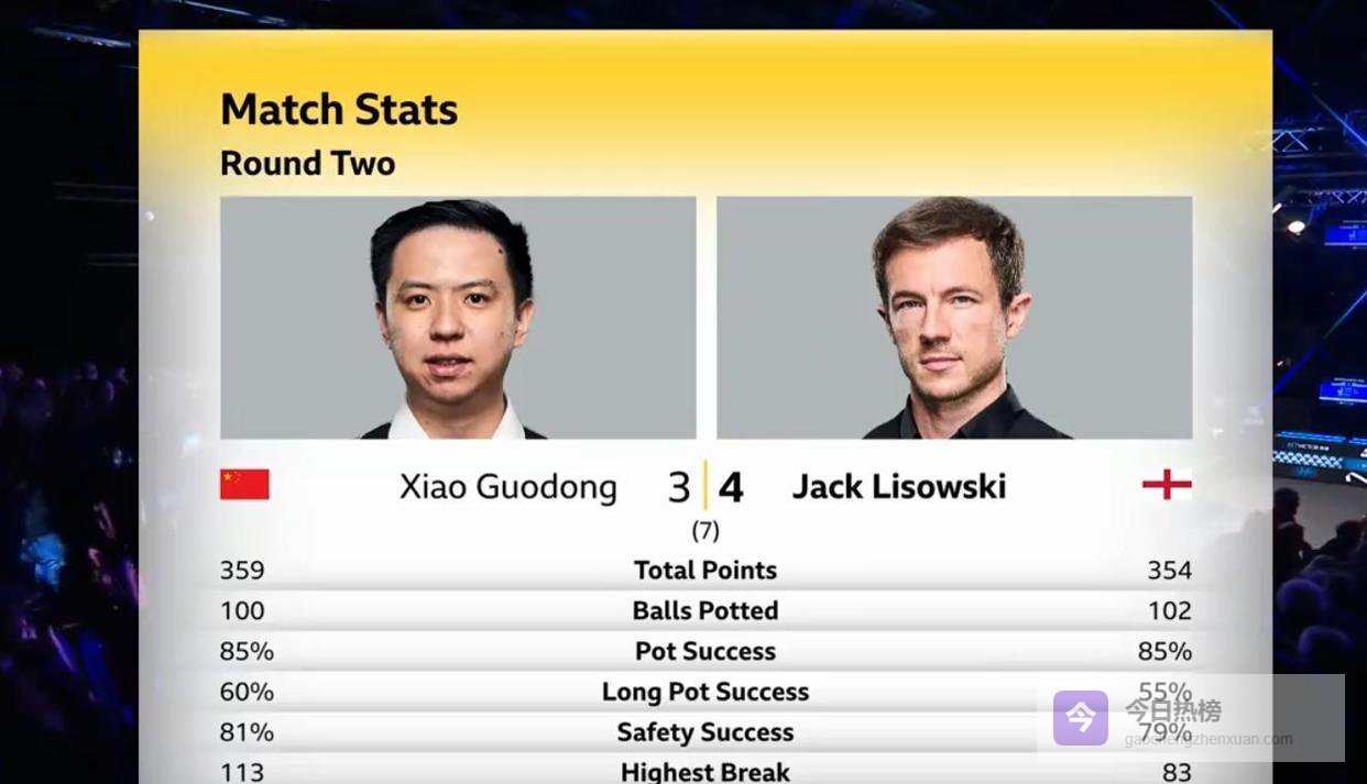 最终比分定格在3-1,肖国栋遗憾止步32强,利索夫斯基则和另一场获胜的杰克·琼斯一起,率先拿到了16强的门票。