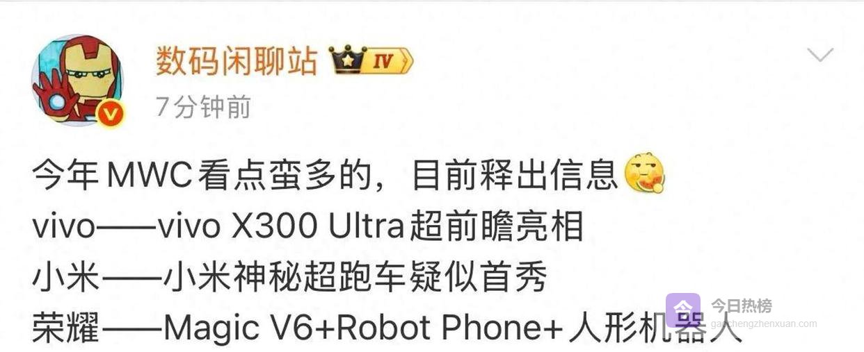 知名数码博主“数码闲聊站”已经提前剧透了,vivo、小米、荣耀这几家都准备了不少惊喜,估计要在MWC上掀起一波高潮。