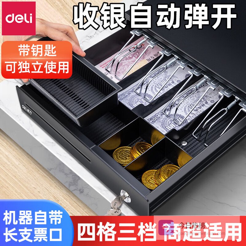 推荐入手:得力抽屉式收银箱四格三挡