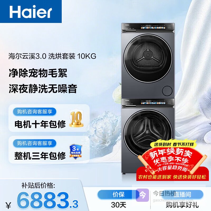 【京东自营】海尔云溪3.0滚筒洗烘套装10KG全自动洗衣机+热泵烘干机家用家电补贴京东自营583+5¥