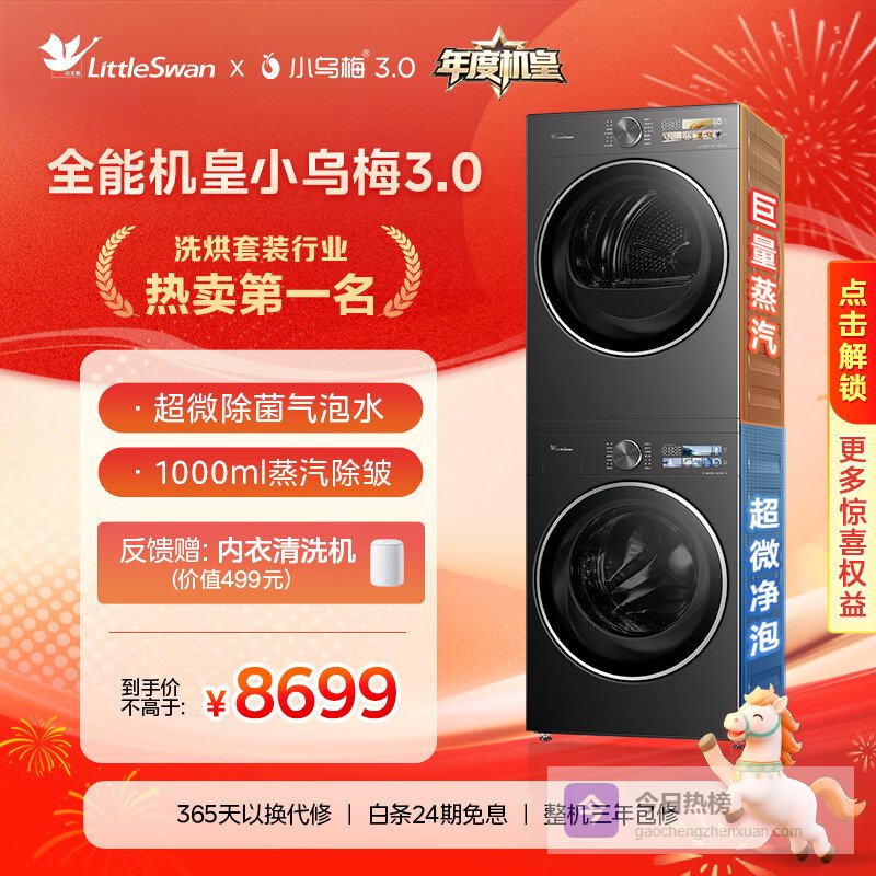 【京东自营】小天鹅年度机皇小乌梅3.0洗烘套装10KG滚筒洗衣机全自动+热泵烘干机AI智投TG10V¥