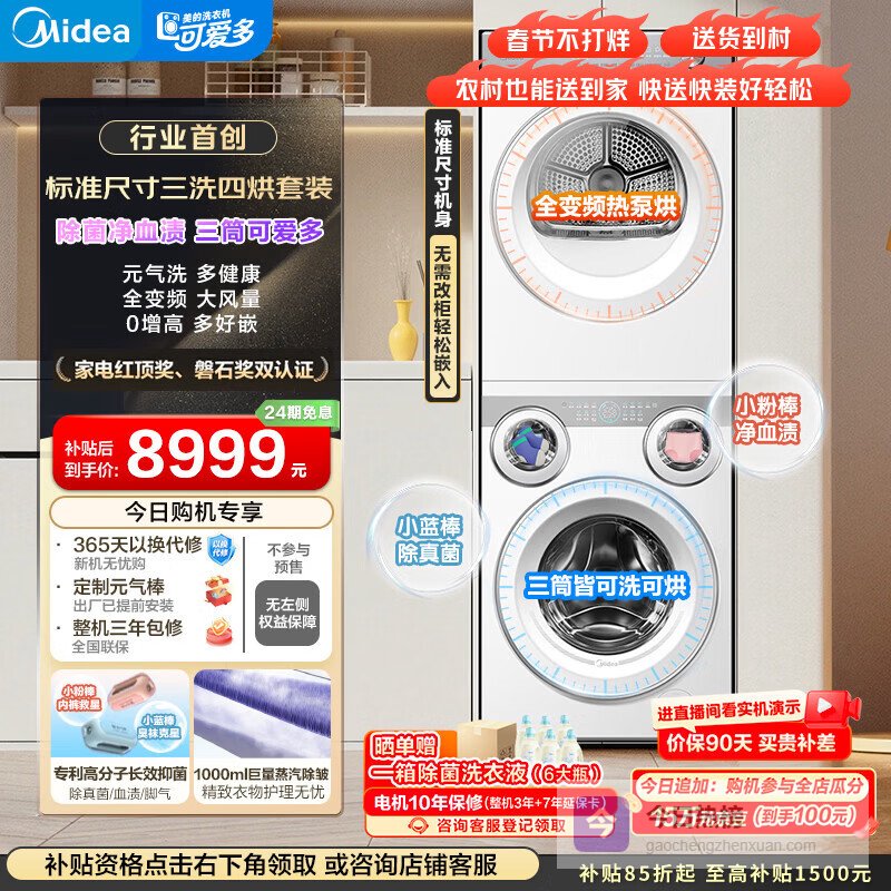 【京东自营】美的可爱多分区洗烘套装11KG三筒滚筒洗衣机全自动洗烘一体+烘干机MD11DDEX+10¥