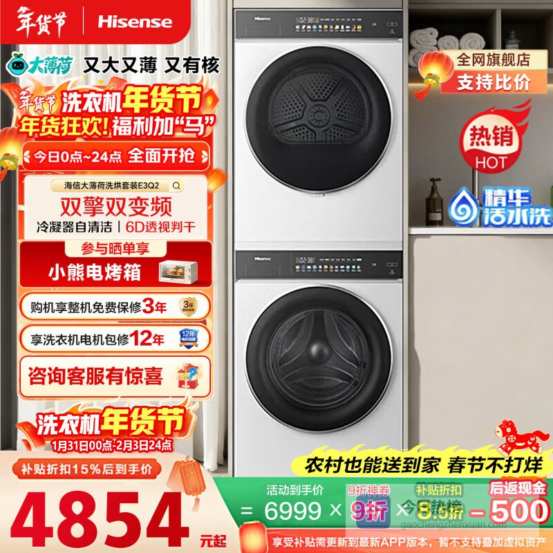 【京东自营】海信大薄荷洗烘套装10KG滚筒洗衣机+双擎双变频泵烘干机1.25洗净比国家补贴WF100¥
