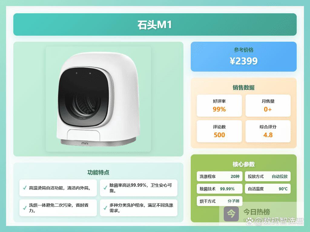 第1款:石头M1石头科技给人的印象一直是智能和创新,它家的产品线覆盖扫地机器人、洗地机等等,在智能家居领域积累了不错的口碑。石头在产品设计上挺有自己的想法,总是能把科技感和实用性结合起来,做出一些让人眼前一亮的产品。而且石头在售后服务方面做得还行,所以用户粘性一直比较高,也愿意尝试它家的新品。