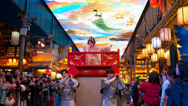 本次元宵喜乐会首次打破传统观演模式,将举办地欢乐太行谷打造为沉浸式的“元宵游园灯会”实境空间。还未到直播喜乐会当天,欢乐太行谷就游客如织,人头攒动,他们都是冲着正月初九至正月十一多位艺人空降园区互动来的。文旅星推官王凯沐先后携手张卓尔、高旭、马韬、李斌彬,带领游客体验长治特色年俗“烤灯糕”、投壶、射箭等活动,其间穿插趣味互动与现场献唱,氛围感拉满;大年初十迈利撒、魏忠杰接力游园,通过转花灯、送祝福、赠好礼等形式,持续传递这份喜乐。艺人与游客近距离互动,现场人气高涨、反响热烈,观众不再是单纯的旁观者,而是化身提灯游园的参与者,沉浸式感受传统节俗的鲜活魅力。更值得期待的是,后续还有刘忻、郭碧婷、曾舜晞、袁一琦等嘉宾轮番登场,这场热闹的元宵互动将延续至正月十四。