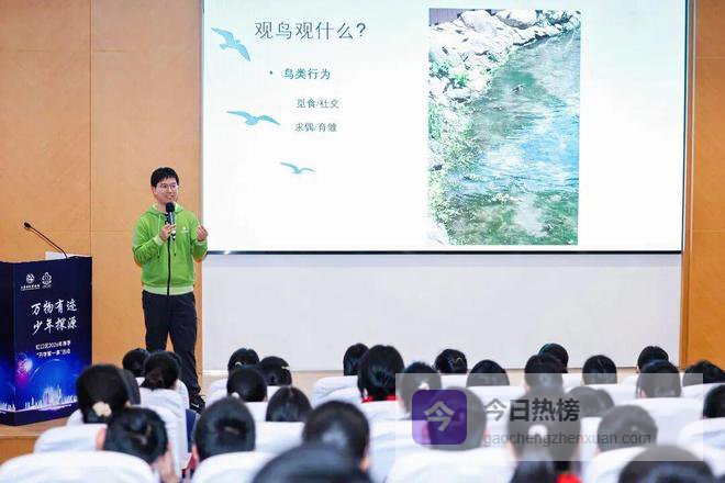 活动创新采用“馆校双师 少年探秘者”研学模式,80余名虹口初中生在上海自然博物馆专家与学校教师的联合带领下,参与“城市观鸟与鸟类保护”互动讲座。学子们围绕观鸟历史、实战技巧及保护举措三大维度,深入解码上海这座现代化都市的生态内涵,不仅掌握了城市观鸟诀窍,更立志为生物多样性保护贡献少年力量。