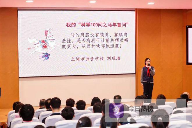 上海市长青学校的刘璟璠同学提出的“马年首问”——“马的肩膀没有锁骨、靠肌肉悬挂,是不是为了让前肢的摆动幅度更大,从而加快奔跑速度?”,入选“科学100问”入围名单,生动诠释了“身边疑问皆可成为科研起点”的探索理念。