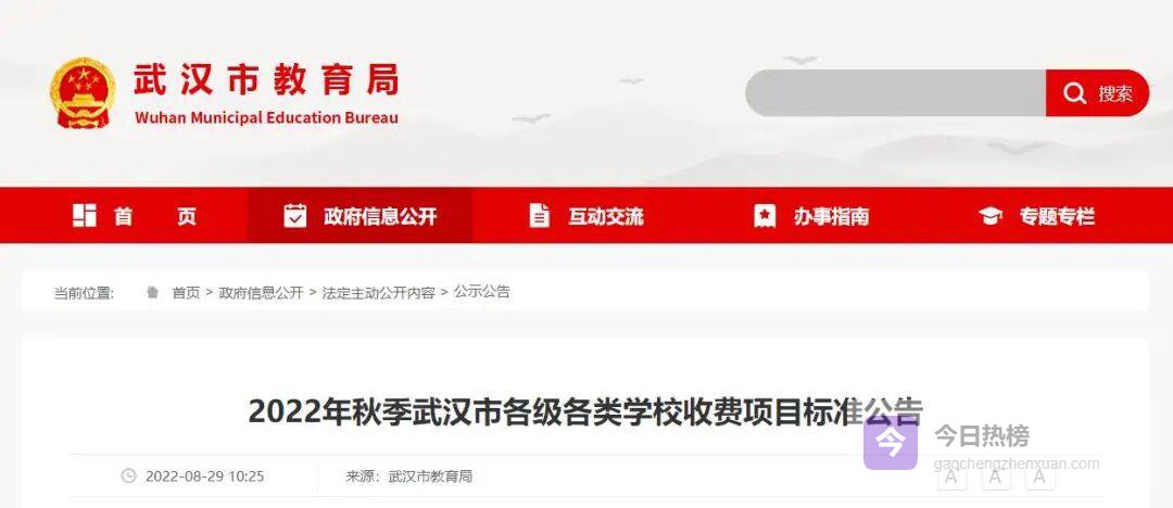 武汉市教育局8月29日集中公示《2022年秋季武汉市各级各类学校收费项目标准公告》,所有收费项目、金额与退费规则一次性说清,家长只需对照清单即可明白“该不该交、交多少、怎么退”。