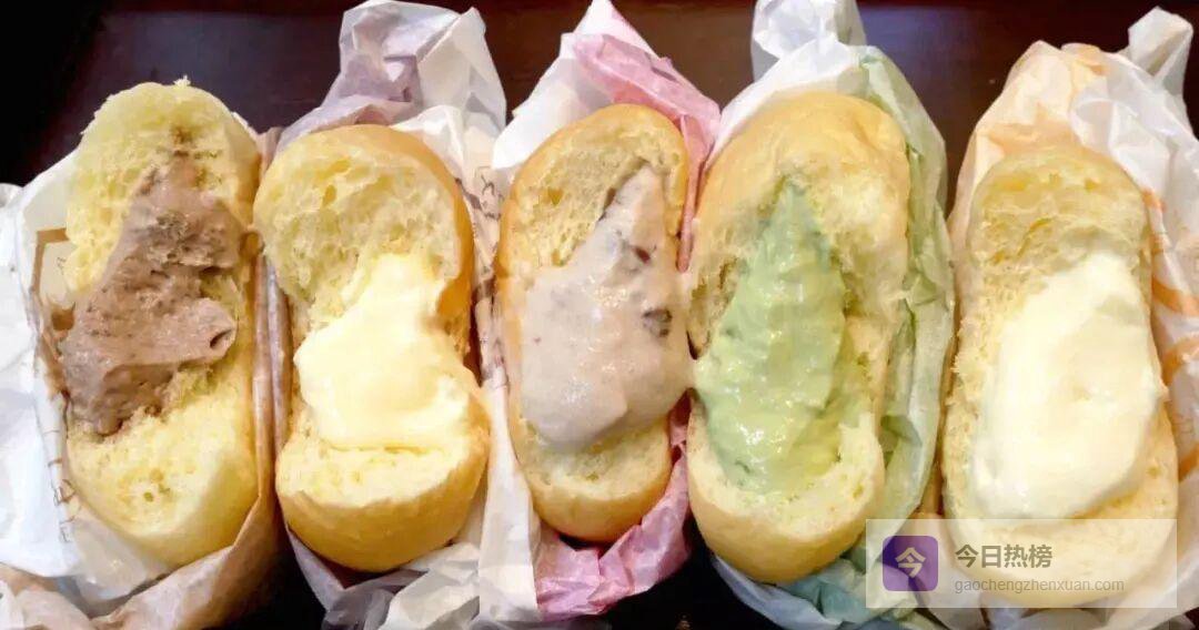 每天人工熬馅、现场裱奶油, 保质期仅一天的广岛古早味奶油面包,甜度被精准锁在“刚刚好”区间。五种颜色包装对应巧克力、红豆、卡仕达、抹茶、奶油五种口味, 小朋友才做选择,大人全都要。